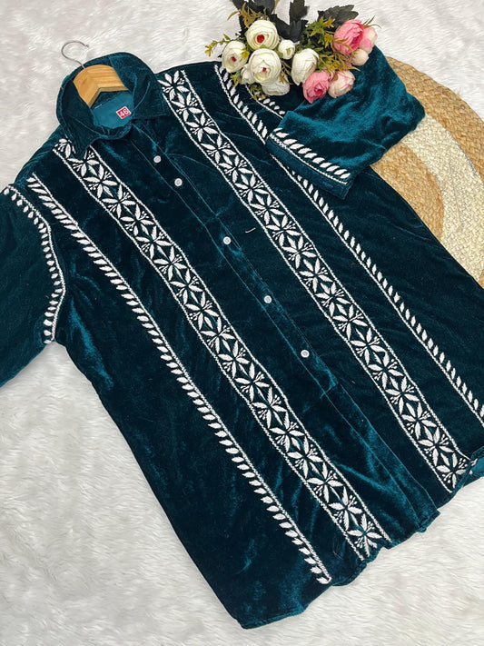 Velvet 2pc cord set with beautiful chikankari handwork perfect for winter
