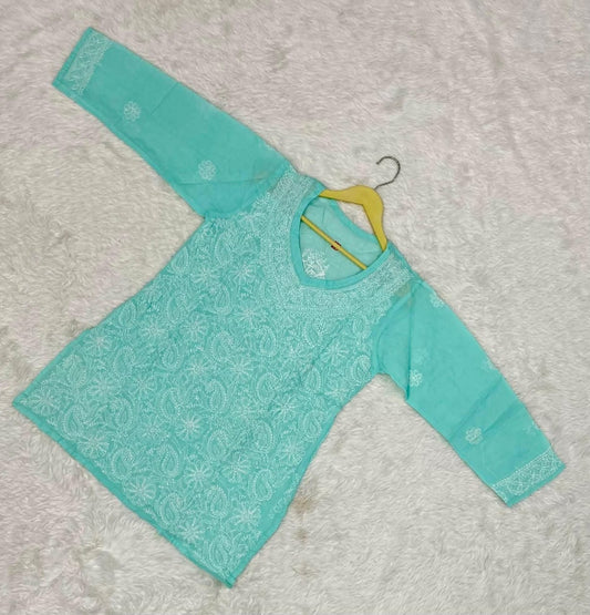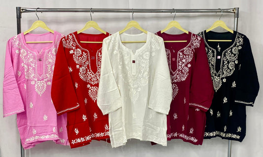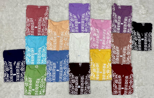Rayon short kurta with beautiful beautiful chikankari handwork