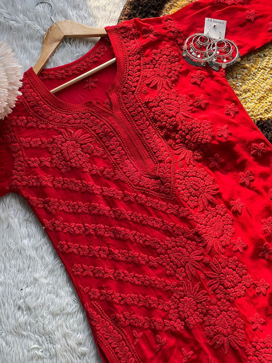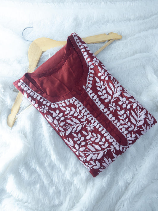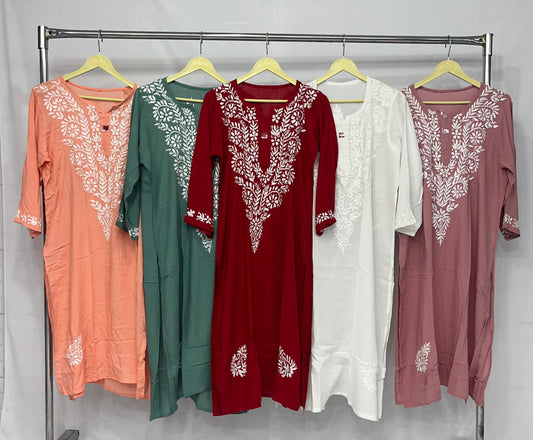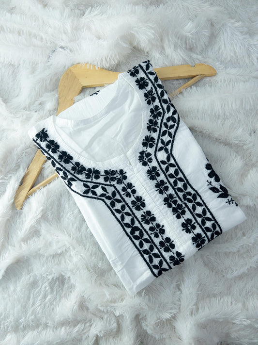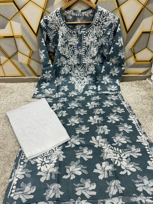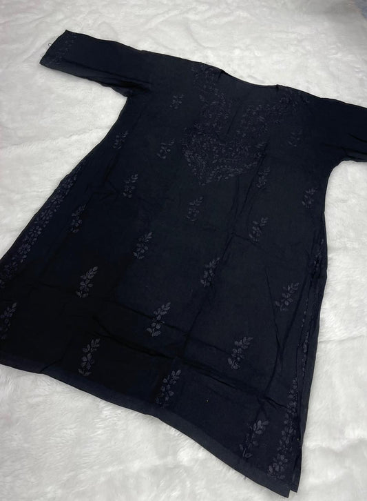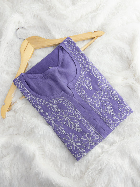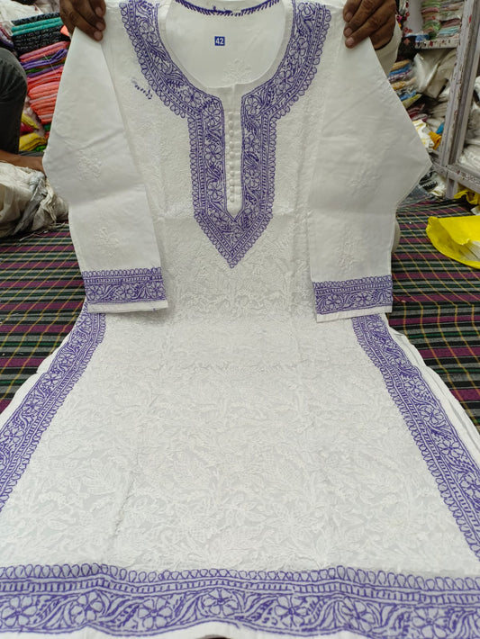 Voil cotton kurta with color thread chikankari on neck Daman and seleaves