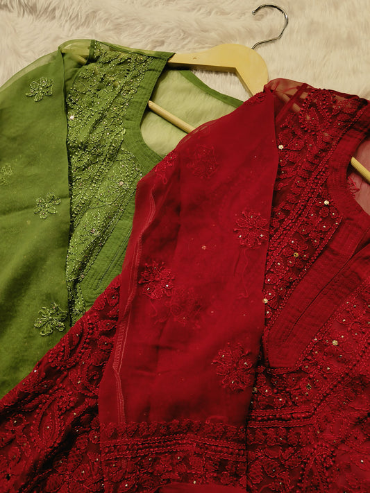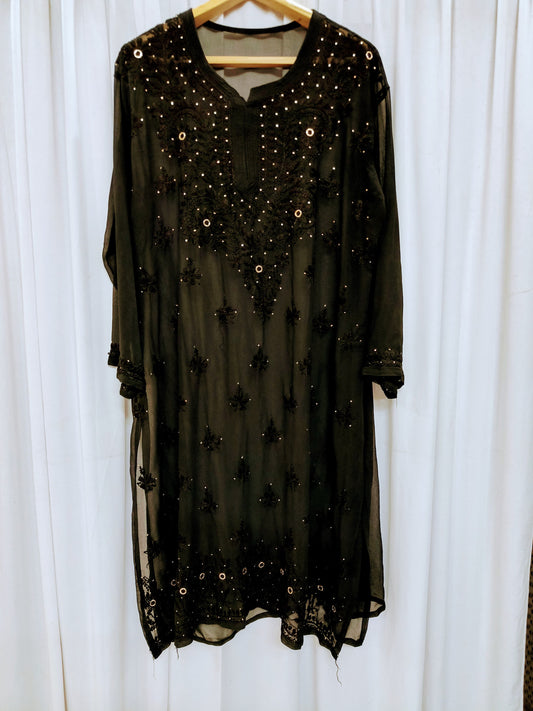 Muslin kurta with mukaish work and beautiful chikankari handwork chikankari