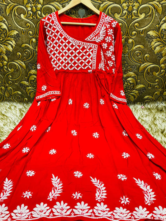 Lucknowi Chikankari Heavy Side Dori Angrakha Gown