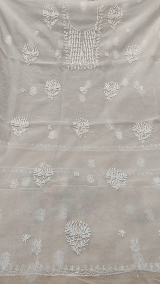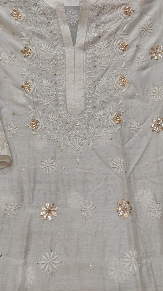 Muslin kurta with 3D chikankari
