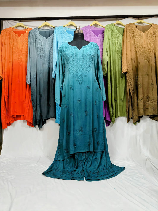 Plus size rayon 2pc kurta and plazo ombre shade dress