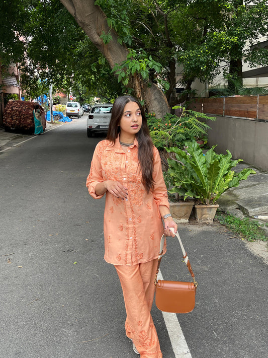 Pure chanderi shirt and pant set also in plus sizes