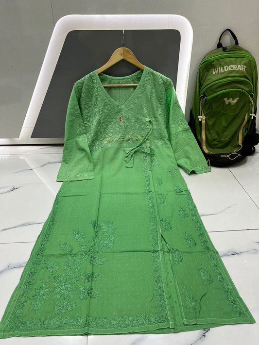 Lucknowi Chikankari Heavy Side Dori Angrakha Gown