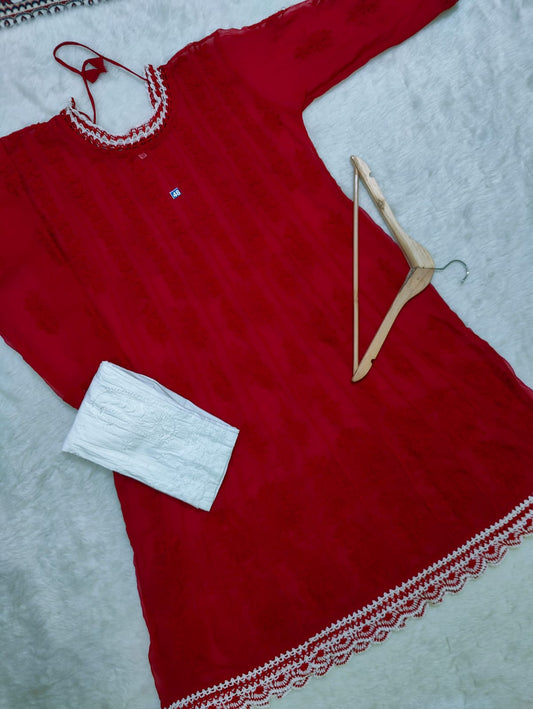 Crochet Daaman Kurti With Pant & Dupatta