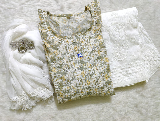 Cotton Kurti With Pant & Dupatta
