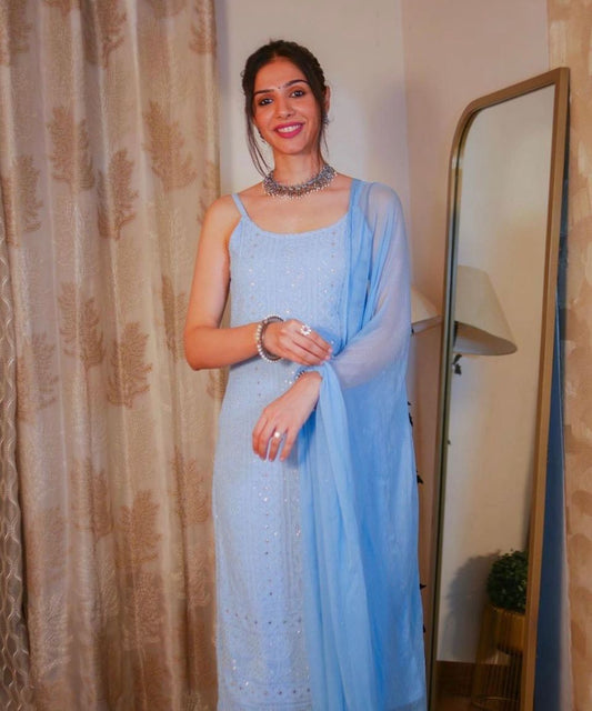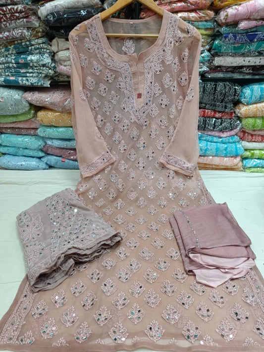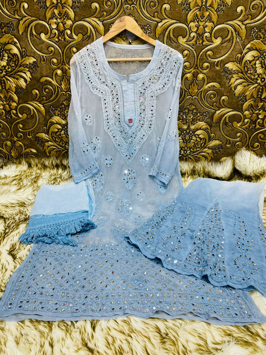 Georgette Akooba Kurti With Pant & Dupatta
