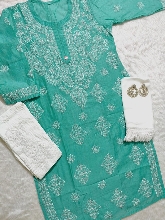 Chanderi Kurti With Pant & Dupatta