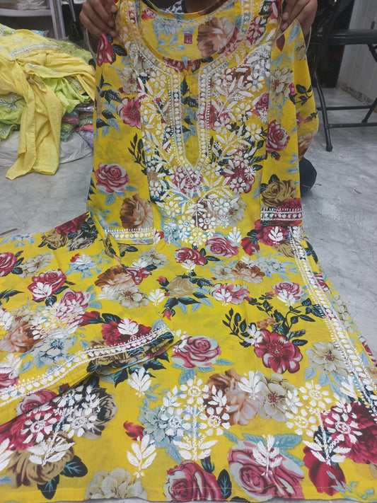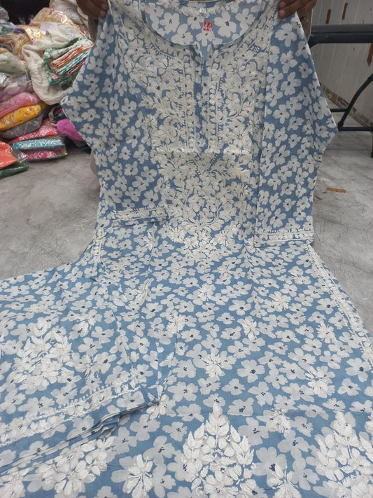 MULCOTTON printed Lucknowi chikankari plazzo suit